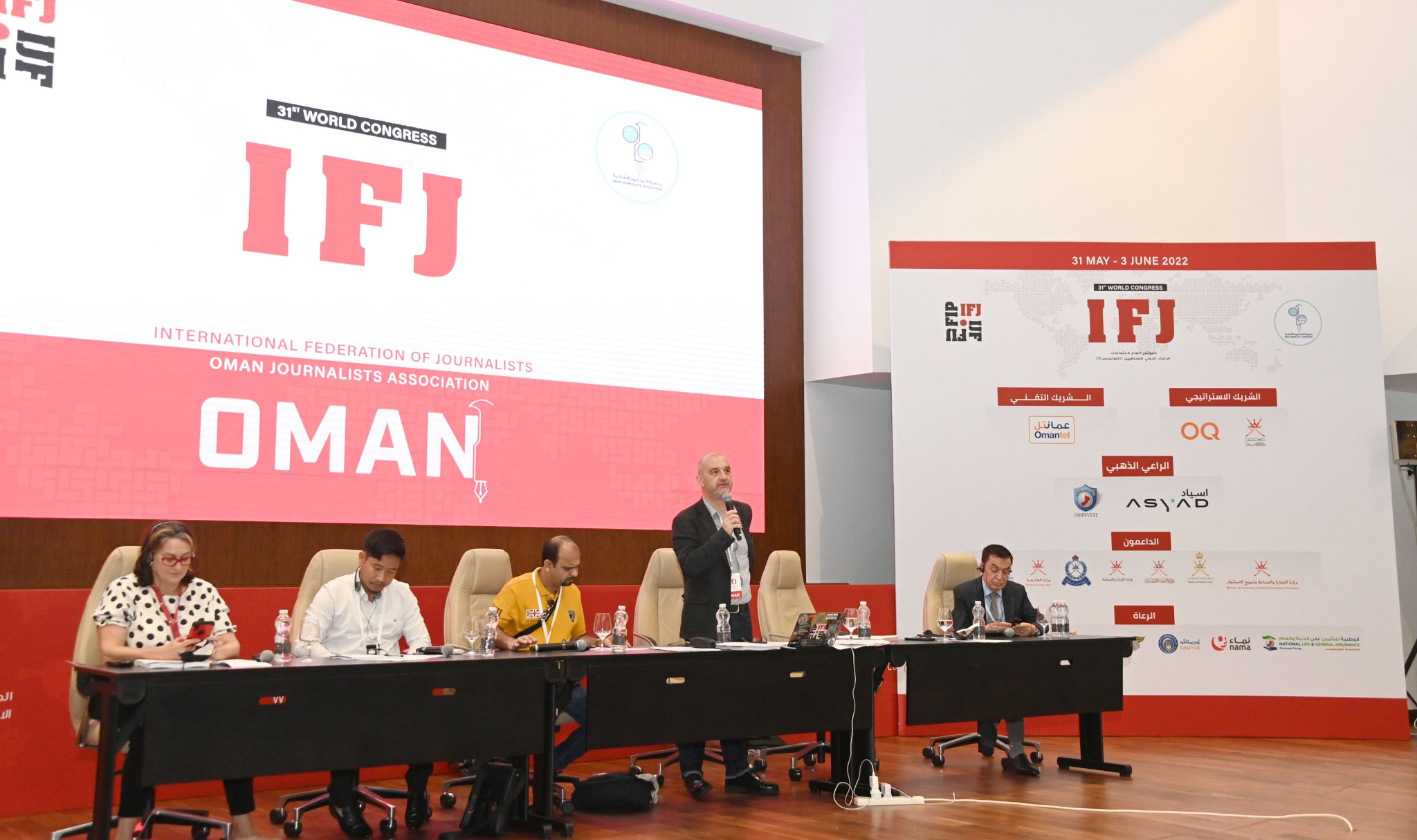 بدء أعمال المؤتمر الدولي للاتحاد الدولي للصحفيين الكونجرس الحادي والثلاثين الذي تستضيفه سلطنة عُمان ممثلة في جمعية الصحفيين العُمانية بمركز عُمان للمؤتمرات والمعارض بمسقط ويستمر 4 أيام.