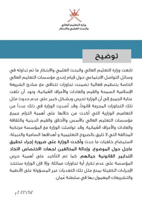 “التعليم العالي” تنشر توضيحًا عن الفعالية التي أُقيمت في إحدى الكليات الخاصة