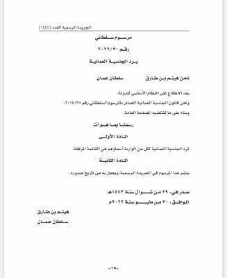 وهج الخليج- مسقط جلالة السلطان هيثم بن طارق يصدر مرسومًا برد الجنسية العمانية لـ 118 شخصًا