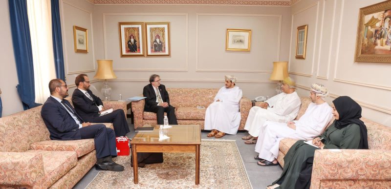 استقبل سعادة الشيخ خليفة بن علي بن عيسى الحارثي، وكيل وزارة الخارجية للشؤون الدبلوماسية، سعادة السفير ولفانج أماديوس برولهارت المبعوث السويسري للشرق الاوسط، صباح اليوم بديوان عام وزارة الخارجية.
