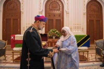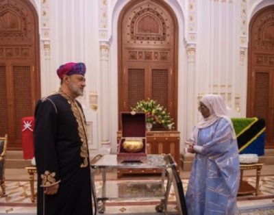 حضرة صاحب الجلالة السلطان هيثم_بن_طارق المعظم حفظه الله ورعاه يقيم مأدبة عشاء رسمية بضيافة قصر العلم العامر تكريمًا لفخامة الرئيسة سامية صولوحو حسن رئيسة جمهورية تنزانيا المتحدة، وقبلها تبادل جلالتُه وفخامة الرئيسة الهدايا التذكارية بمناسبة زيارتها لسلطنة عُمان.