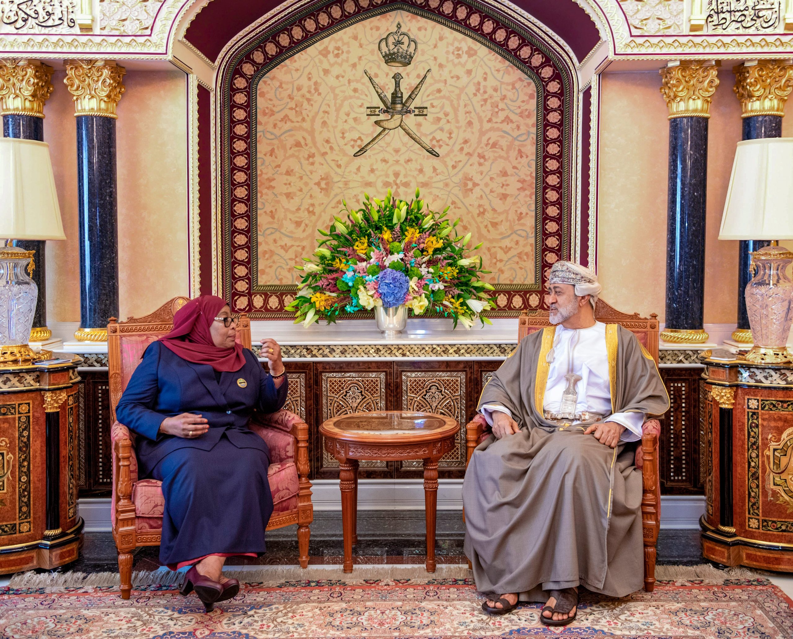 حضرةُ صاحبِ الجلالةِ السُّلطان هيثم بن طارق المعظم /حفظه الله ورعاه/ وفخامة الرئيسة سامية صولوحو حسن رئيسة جمهورية تنزانيا المتحدة يعقدان لقاءً ثُنائيًّا بقصر العلم العامر استكملا خلاله بحث العلاقات الثنائية بين البلدين الصديقين، وسبل دعمها وتعزيزها في مختلف المجالات بما يخدم مصالح شعبيهما المشتركة، إضافة إلى استعراض عددٍ من الأمور التي تـهم الجانبين.