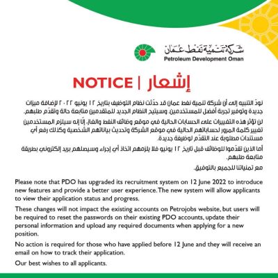 الرئيسية/أخبار محلية/تنبيه من “نفط عمان” بشأن تحديثات في نظام التوظيف أخبار محلية تنبيه من “نفط عمان” بشأن تحديثات في نظام التوظيف14/06/2022. 14/06/2022وهج الخليج- مسقطShare on:WhatsApp14/06/2022. 14/06/2022 فيسبوك X لينكدإن Tumblr بينتيريست Reddit VKontakte مشاركة عبر البريد طباعة