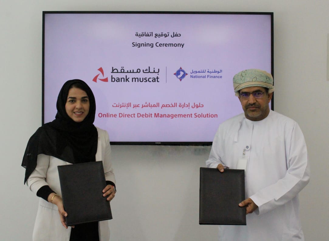 التزاما منه بتعزيز شراكته مع مختلف المؤسسات الحكومية والخاصة لتقديم أحدث الخدمات المصرفية الرقمية للزبائن، وقع بنك مسقط، المؤسسة المالية الرائدة في السلطنة، اتفاقية مع الوطنية للتمويل للاستفادة من خدمة الخصم المباشر عبر الإنترنت، حيث تعد الوطنية للتمويل إحدى الشركات الرائدة في مجال التمويل المتنوع غير المصرفي في السلطنة والتي تقدم مجموعة واسعة من المنتجات التمويلية لزبائنها من الأفراد والشركات.