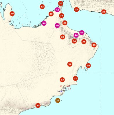 سجلت محطات الرصد التابعه لهيئة الطيران المدني الآن(10:00)صباحاً درجات حرارة تصل لمنتصف الأربعين على سواحل بحر عمان(محطة مسقط 44ºC)بينما سجلت محطات الرصد في سواحل بحر العرب درجات حرارة في نهاية العشرين ومطلع الثلاثين.