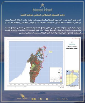 تُثمن هيئة البيئة صدور المرسوم السلطاني السامي من لدن حضرة صاحب الجلالة السلطان هيثم بن طارق المعظم- حفظه الله ورعاه – بإنشاء محمية المنتزه الوطني الطبيعي في محافظة مسندم.