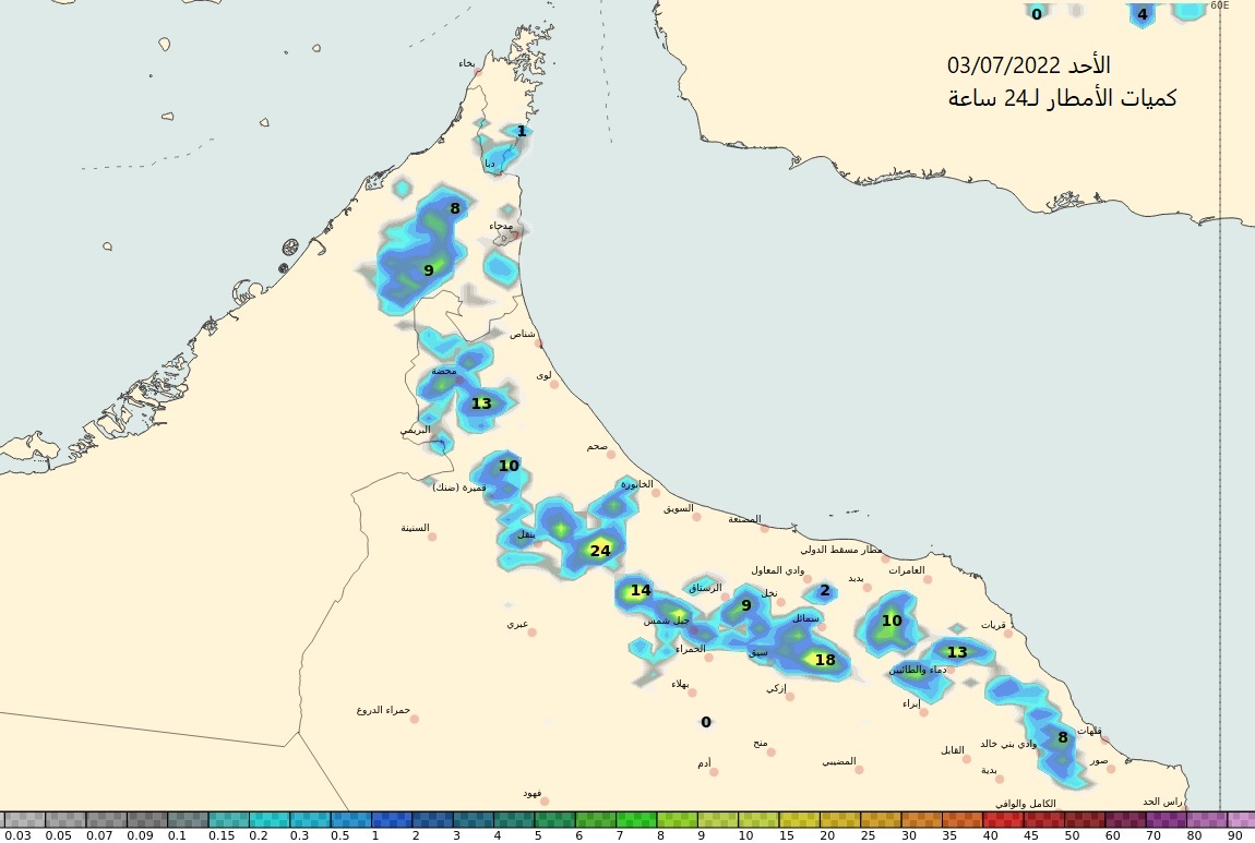 ”كميات الأمطار المتوقعة من النماذج العددية للاستدلال”
