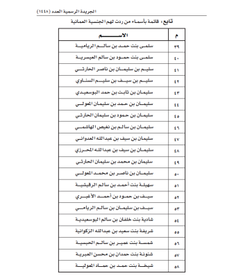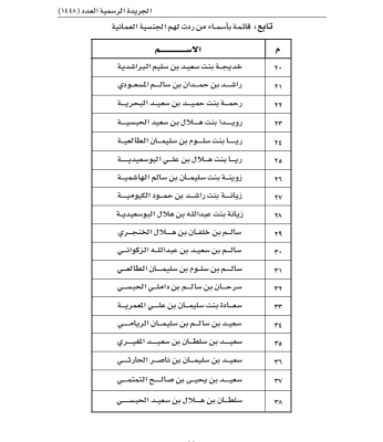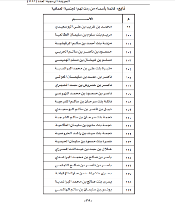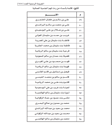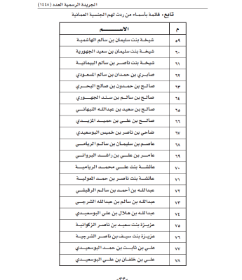 تفضل حضرة صاحب الجلالة السلطان هيثم بن طارق المعظم- حفظه الله ورعاه- فأصدر مرسوما سلطانيا ساميا برد الجنسية.