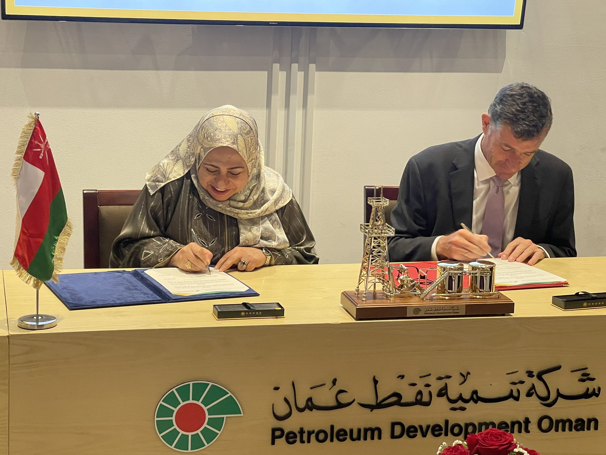 ‏وقّع الاتفاقية كلٌ من معالي الأستاذة الدكتورة رحمة بنت إبراهيم المحروقية، وزيرة التعليم العالي والبحث العلمي والابتكار، والفاضل ستيف فيمستر، المدير العام لشركة تنمية نفط عُمان.