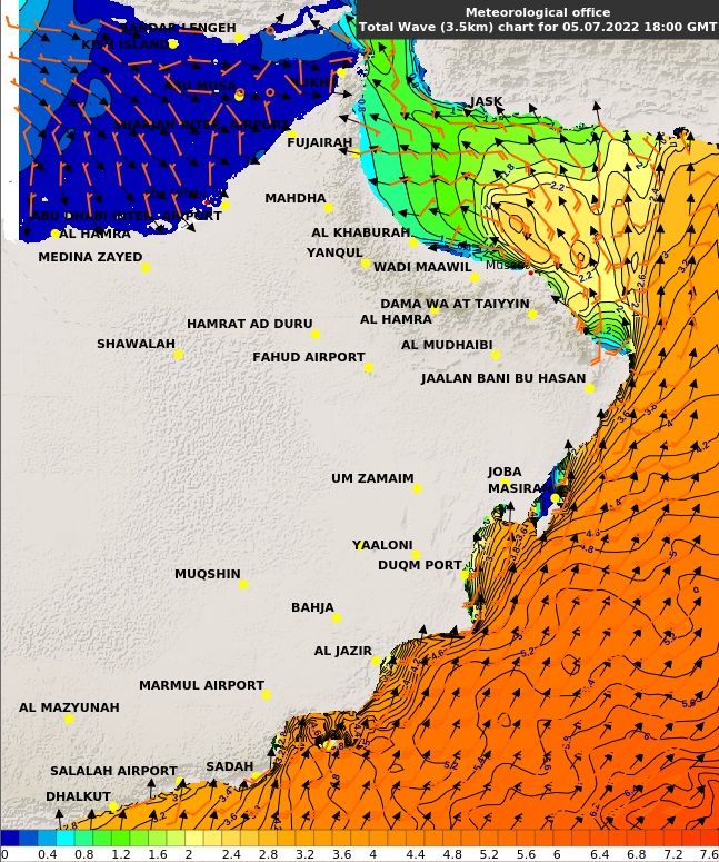 نبَّهت الأرصاد الجوية العمانية الصيادين ومرتادي البحر بتجنب ارتياد البحر حيث يكون البحر هائج الموج على جميع سواحل سلطنة عمان ويصل أقصى ارتفاع له 4.0 أمتار يومي الثلاثاء والأربعاء.