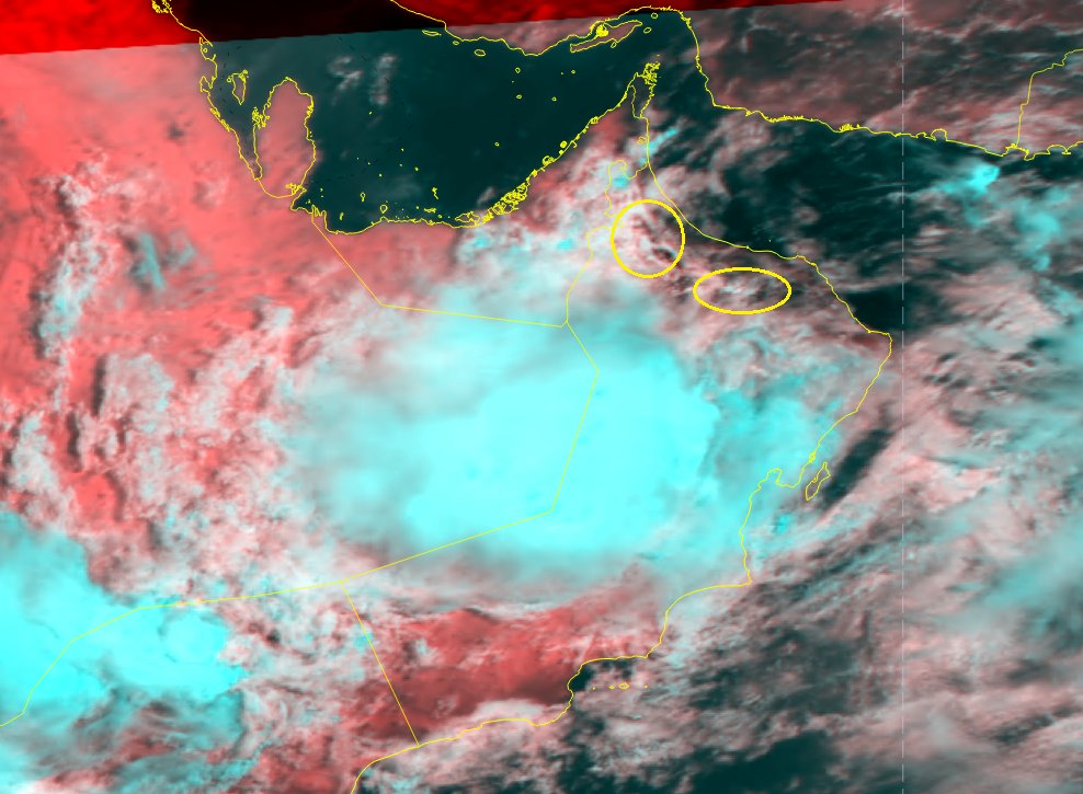 أشارت الأرصاد الجوية العمانية إلى بداية تشكل السحب على جبال الحجر مع فرص لتعمقها لاحقًا، هطول أمطار متفرقة تكون رعدية أحيانًا مصحوبة برياح وجريان الأودية والشعاب.