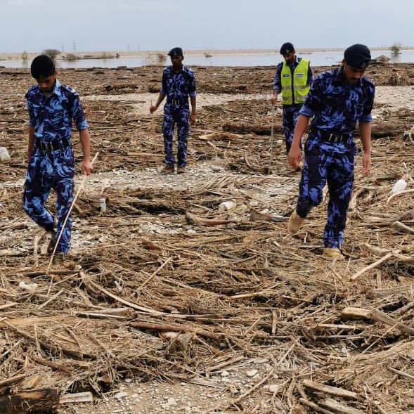 تواصل فرق البحث والإنقاذ عمليات البحث عن المفقود في مجرى وادي عاهن بولاية صحار بمشاركة قيادة شرطة محافظة شمال الباطنة والمواطنين وباستخدام وسائل مختلفة مثل كلاب البحث وطائرات الدرون.