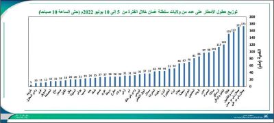 أوضحت وزارة الثروة الزراعية والسمكية وموارد المياه عبر “منشور لها” كميات توزيع هطول الأمطار على عدد من ولايات سلطنة عُمان خلال الفترة 5 يوليو إلى 10 يوليو 2022م (حتى الساعة 10 صباحًا).