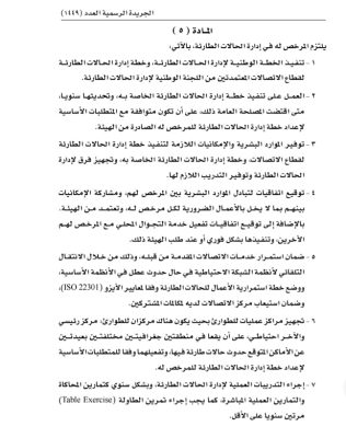 إصدار لائحة تنظيم إدارة الحالات الطارئة للمرخص لهم