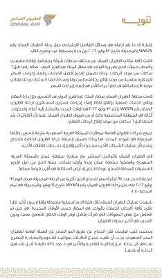 وهج الخليج - مسقط أصدر الطيران العماني توضيحًا حول ما يتم تداوله في وسائل التواصل الاجتماعي بشأن رحلته رقم WY674 والمجدولة بتاريخ ١٣ يوليو ٢٠٢٢ بين مدينتي جدة ومسقط.