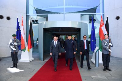 فلدى وصول جلالة السُّلطان المعظّم مقر المستشارية كان دولة أولاف شولتس في مقدمة المستقبلين والمرحِّبين بعاهل البلاد المفدى، كما كان في الاستقبال عدد من كبار المسؤولين الألمان.
