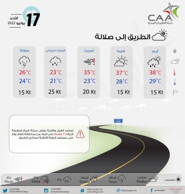 حالة الطقس المتوقعة ليوم غد.. طريق أدم – صلالة