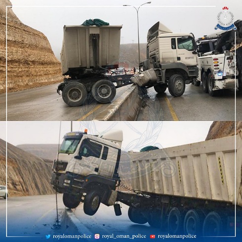 لمستخدمي طريق “صلالة – ثمريت”.. حادث تدهور شاحنة وتوقف الحركة المرورية