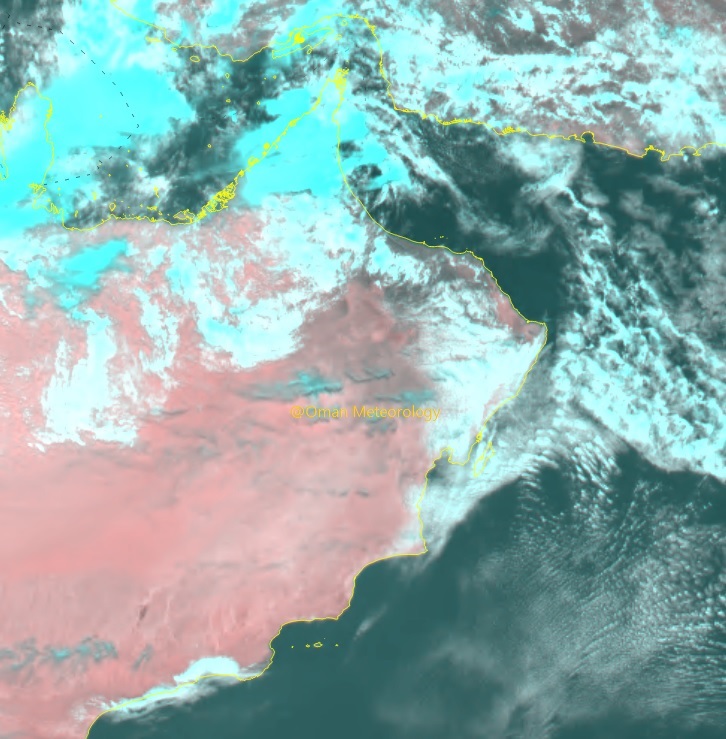 – استمرار تدفق السحب الممطرة على محافظات مسندم وشمال الباطنة والبريمي.