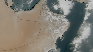 أفادت الأرصاد الجوية العمانية أن الصورة الجوية توضح “انتشار السحب المنخفضة والضباب على أجزاء من شمال الباطنة وشمال وجنوب الشرقية وسواحل الوسطى وسواحل وجبال ظفار. وتدفق السحب المختلفة الإرتفاع على سواحل جنوب الشرقية ومسقط وبالقرب من سواحل جنوب الباطنة”.