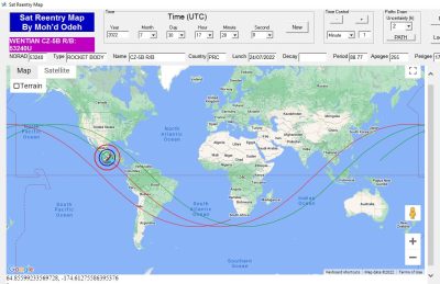 وأوضح المركز بأن الخريطة تشير إلى موقع سقوط القمر الصناعي المتوقع بحسب توقعات برنامج متابعة سقوط الأقمار الصناعية، وتشير الخطوط الخضراء والحمراء إلى الأماكن التي قد يسقط فيها القمر الصناعي ضمن هامش خطأ مقداره زائد ناقص 2 ساعة. وستتغير هذه الخريطة بمرور الوقت، وكلما اقتربنا من موعد السقوط سيقل هامش الخطأ وستقل الأماكن المرشحة ليسقط الحطام فوقها، ولكن بكل تأكيد حتى قبل ساعتين من موعد السقوط لا يمكن تحديد المكان والوقت بشكل دقيق، فعادة يكون أقل هامش خطأ هو بحدود زائد ناقص ساعة واحدة، وإذا علمنا بأن الحطام هذا يلف الكرة الأرضية مرة واحدة كل 89 دقيقة فهذا يعني أن هامش خطأ مقداره ساعتين يعني أن هناك مناطق شاسعة ستبقى مهددة بسقوط القمر الصناعي فوقها.