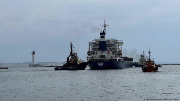 وأبحرت هذا الأسبوع السفينة رازوني، وهي أول سفينة محملة بالحبوب الأوكرانية تغادر ميناء أوكرانيا منذ بداية الغزو الروسي.