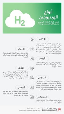 أوضحت وزارة الطاقة والمعادن أن أنواع الهيدروجين المختلفة تُصنف بناءً على التقنية المستخدمة في إنتاجه.
