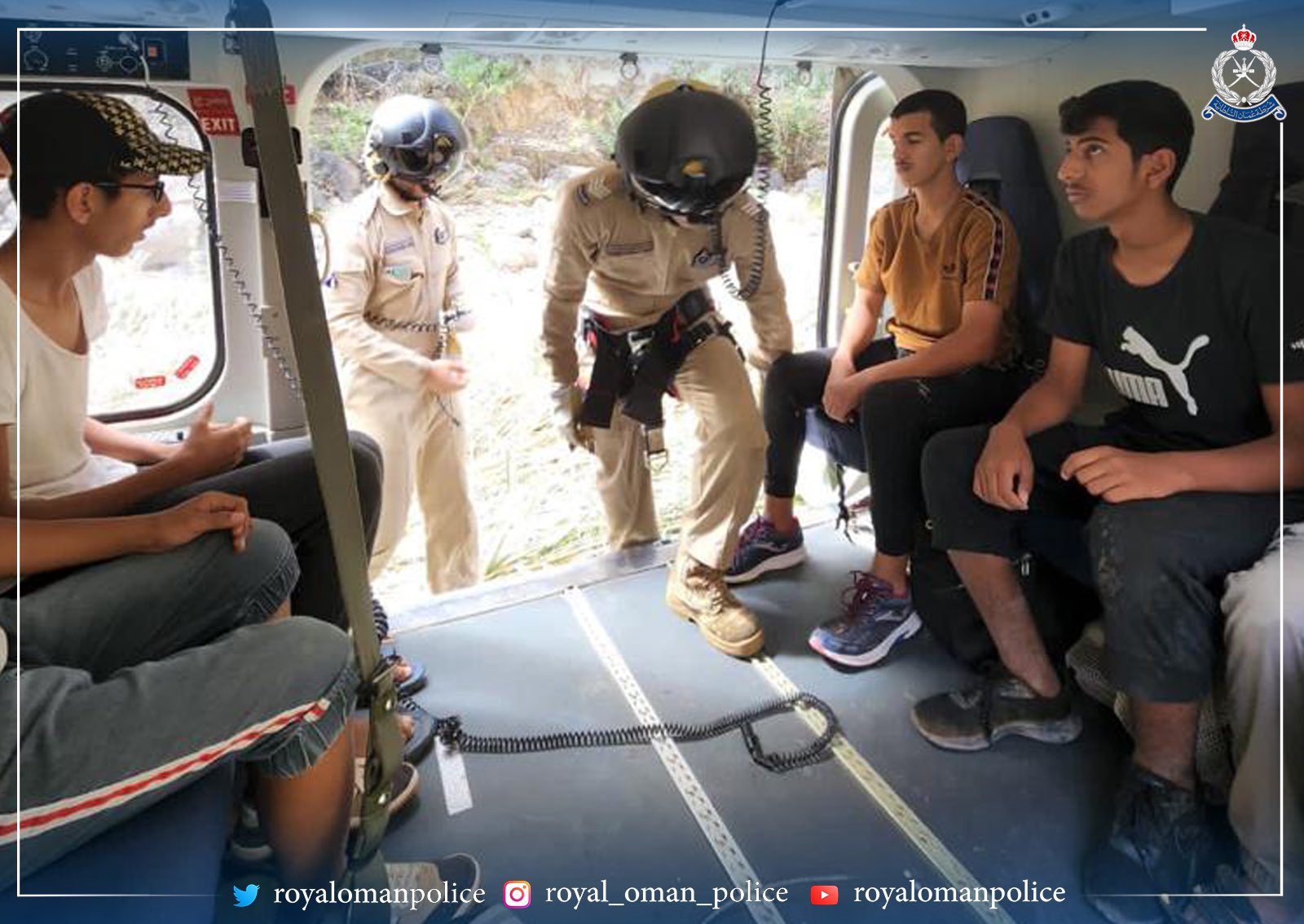 طيران الشرطة ينقذ 6 أشخاص في أحد جبال نزوى