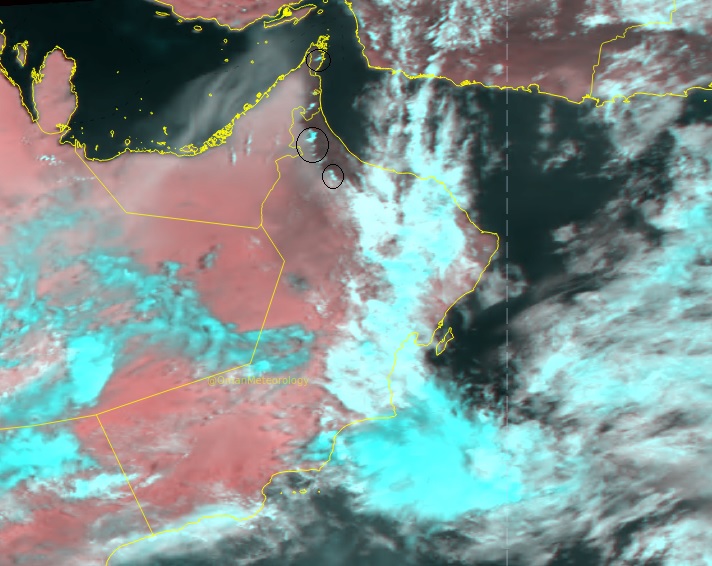 أشارت الأرصاد الجوية العمانية إلى بداية نشاط التكونات المحلية على جبال الحجر الغربي مع فرص لأمطار متفرقة لاحقًا، وانتشار السحب على محافظات شمال وجنوب الشرقية ومسقط وجنوب الباطنة والداخلية والوسطى وظفار.