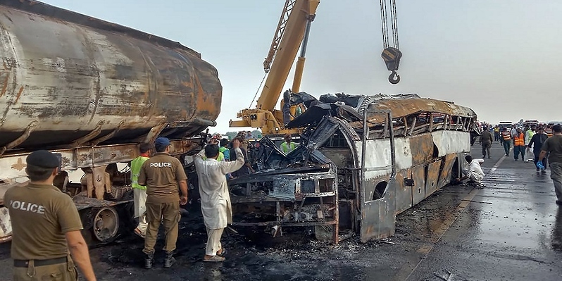 مصرع 20 شخصًا في حادث اصطدام بين حافلة وصهريج في باكستان