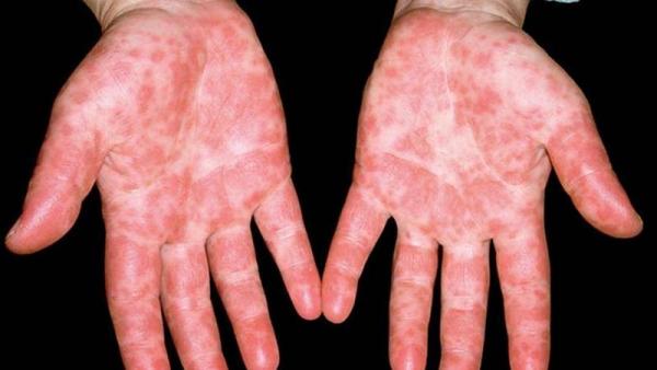 واكتسبت العدوى اسمها لأنها تسبب بظهور بثور حمراء مؤلمة في جسم المريض “تتسع تدريجيا إلى حجم حبة طماطم”. ويعاني معظم المرضى أيضا من ارتفاع في درجة الحرارة وآلام شديدة في المفاصل، وتم الإبلاغ أيضا عن الشعور بالتعب والمرض والإسهال.