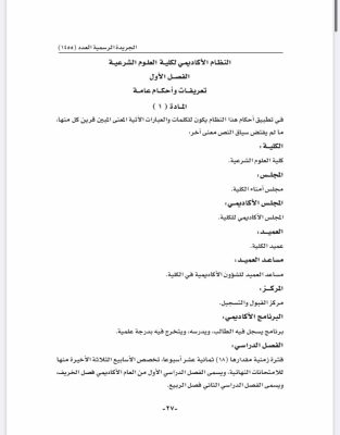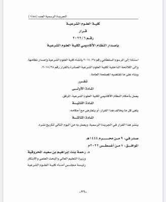 أصدرت كلية العلوم الشرعية قرارا رقم ٦/2022 بإصدار النظام الأكاديمي لكلية العلوم الشرعية.