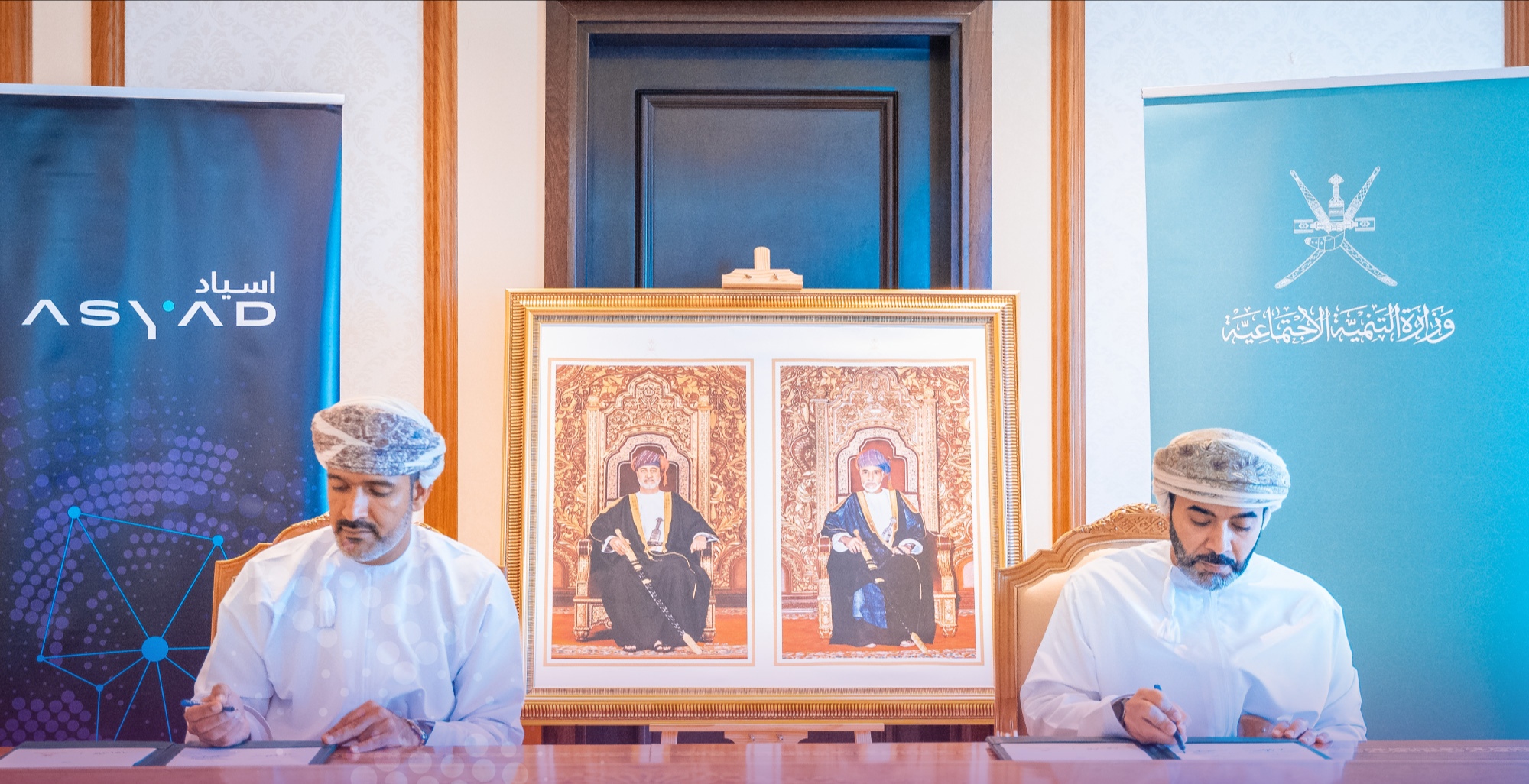 وقع الاتفاقية سعادة راشد بن أحمد الشامسي وكيل وزارة التنمية الاجتماعية وعبدالملك بن عبدالكريم البلوشي رئيس وحدة الرأسمال البشري في مجموعة أسياد.