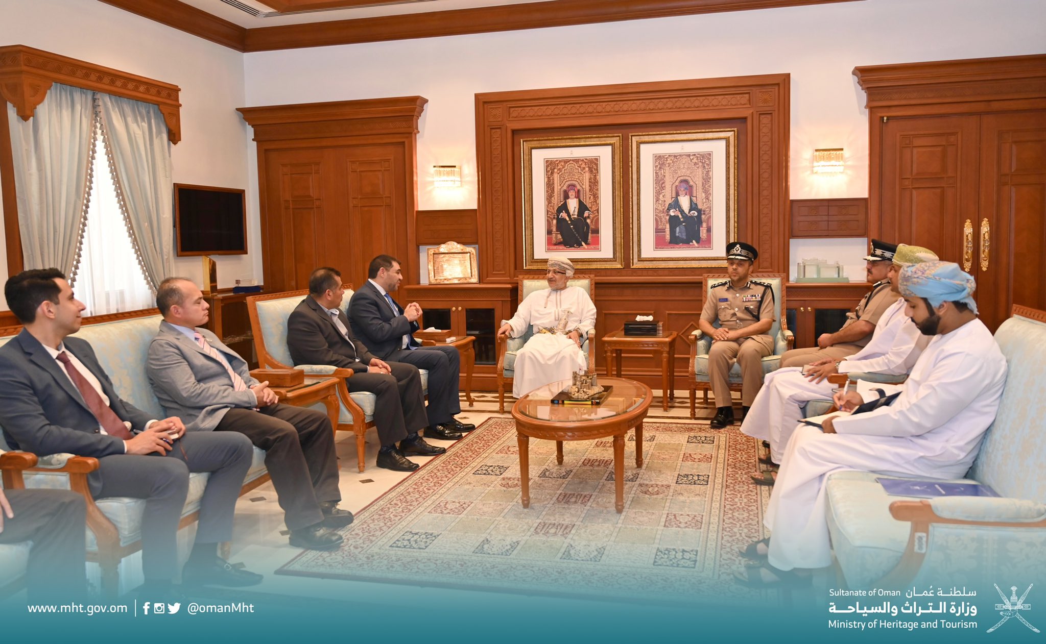 استقبل معالي وزير التراث والسياحة سعادة ألفونسو زيغبي كامارينا المدير التنفيذي للاستراتيجية والدبلوماسية العامة بوزارة الخارجية المكسيكية والوفد المرافق له الذي يزور سلطنة عمان للاطلاع على التسهيلات المُقدمة لاستقبال المشجعين لحضور منافسات كأس العالم في قطر 2022.