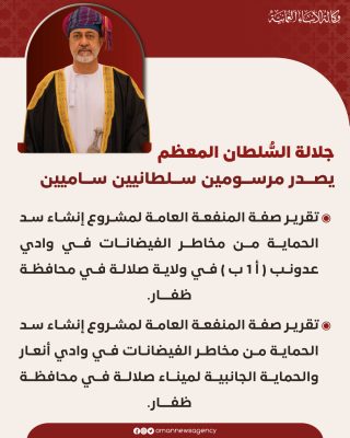 جلالة السُّلطان المُعظم يصدر مرسومين سلطانيين ساميين