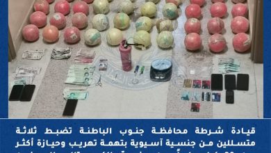 وهج الخليج – مسقط قيادة شرطة محافظة جنوب الباطنة تضبط ثلاثة متسللين من جنسية آسيوية بتهمة تهريب وحيازة أكثر من…