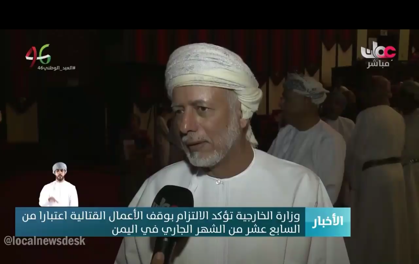 -  أخبار محليةوزارة الخارجية تؤكد الالتزام بالبنود الخاصة لوقف الأعمال القتالية في اليمن بدءًا من 17نوفمبرصرح مصدر مسؤول في وزارة الخارجية أنه في ضوء الزيارة التي قام بها معالي جون كيري وزير الخارجية الأمريكي ولقائه… أكمل القراءة »