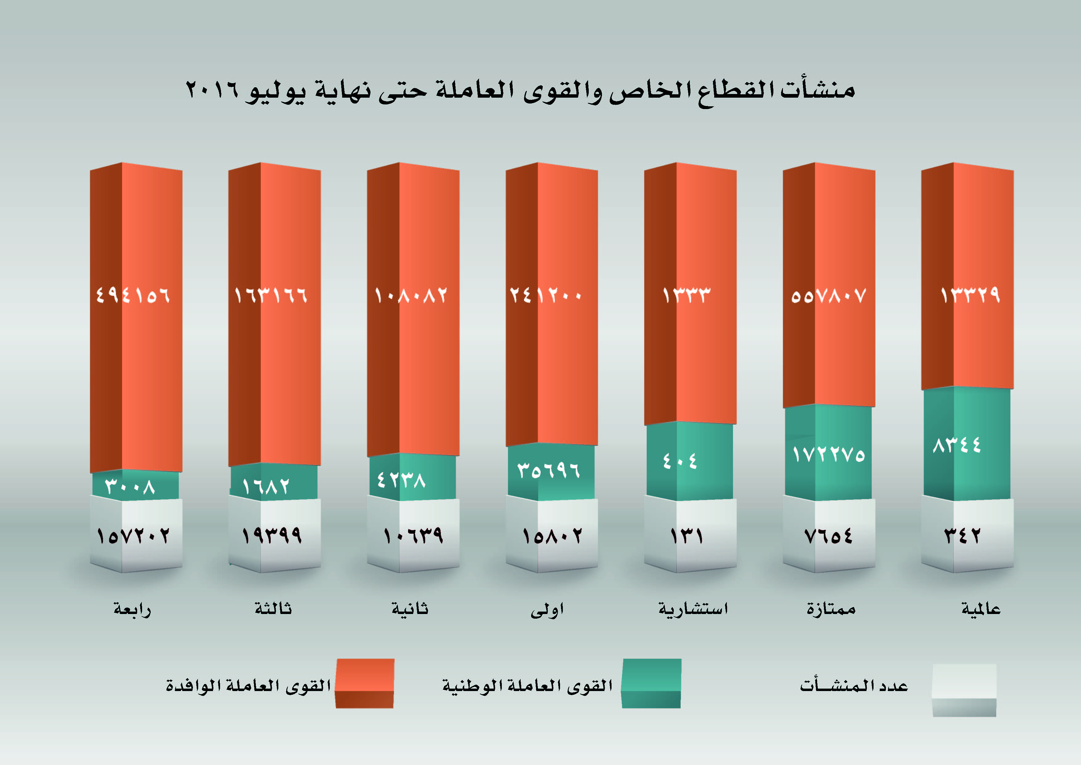 نسب التعمين في منشآت القطاع الخاص حتى شهر يوليو 2016